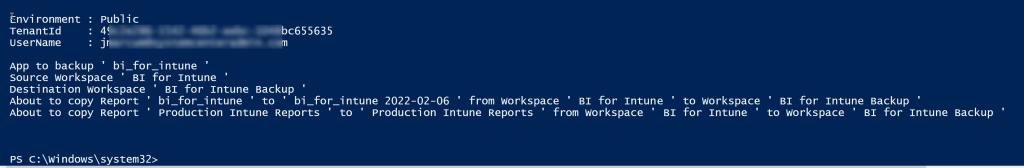 - A second install of BI for Defender to be used as a backup workspace. You do not need to configure the dataset parameters, this workspace is simply a place-holder to store a copy of your custom reports.