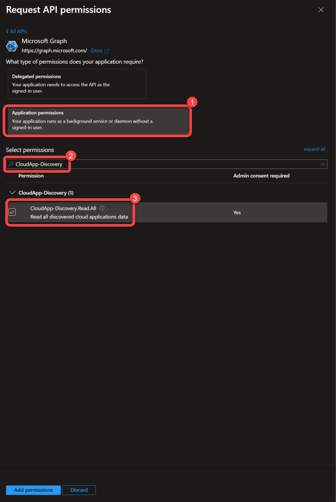 Step 8: Add CloudApp-Discovery Permissions¶