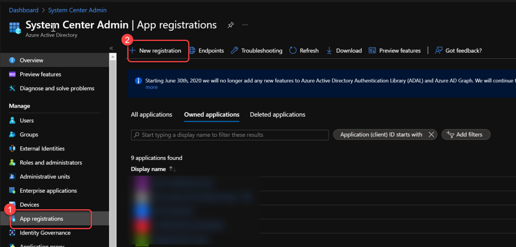 - Search for and select App registrations.
