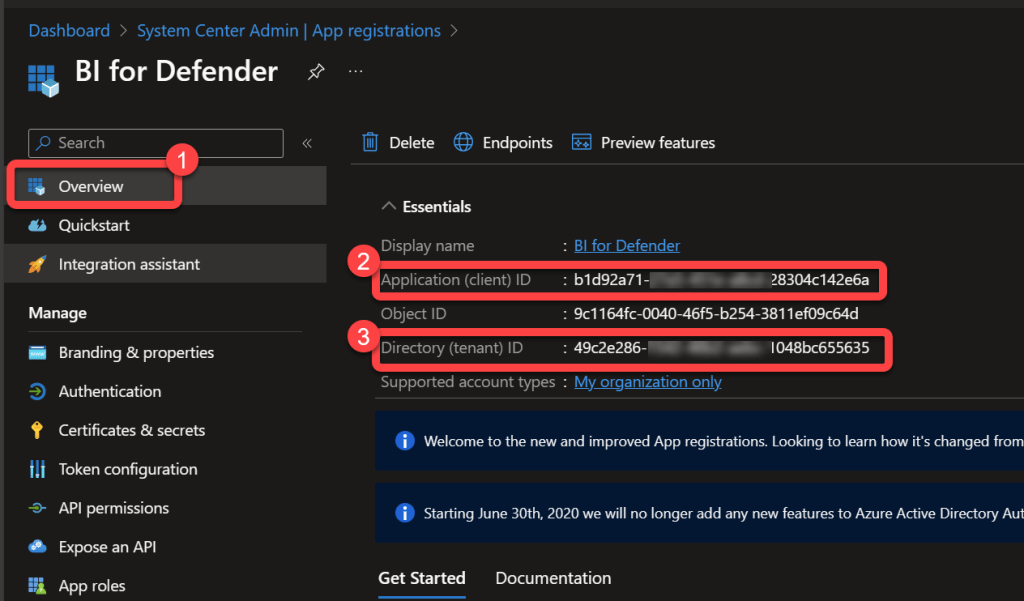 - The Azure AD Application registration is now complete.
