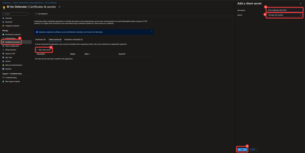 - Select New client secret.