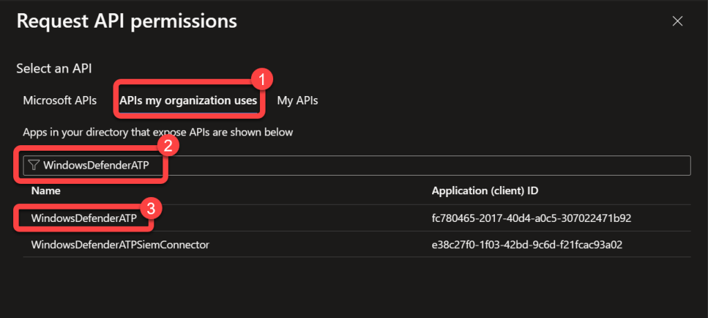Step 12: Select WindowsDefenderATP API¶