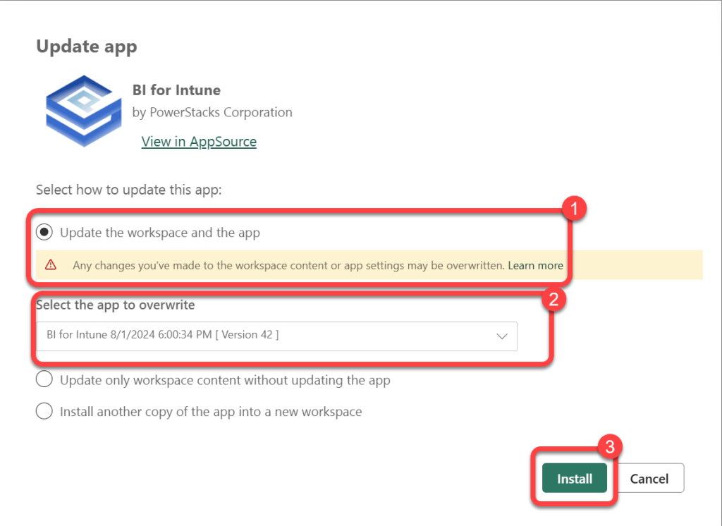 Prerequisites: The user executing these steps should be the owner of the BI for Intune workspace.