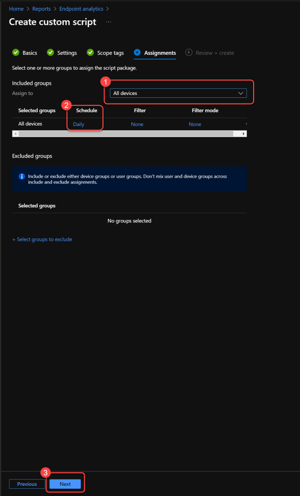 Step 9: Assign devices and schedule¶