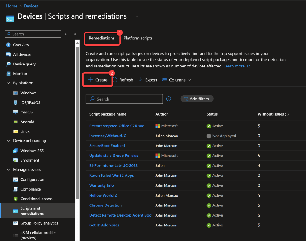 - Appropriate licenses to use remediation scripts in Intune.
