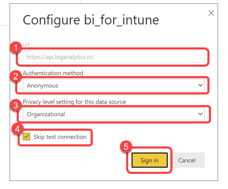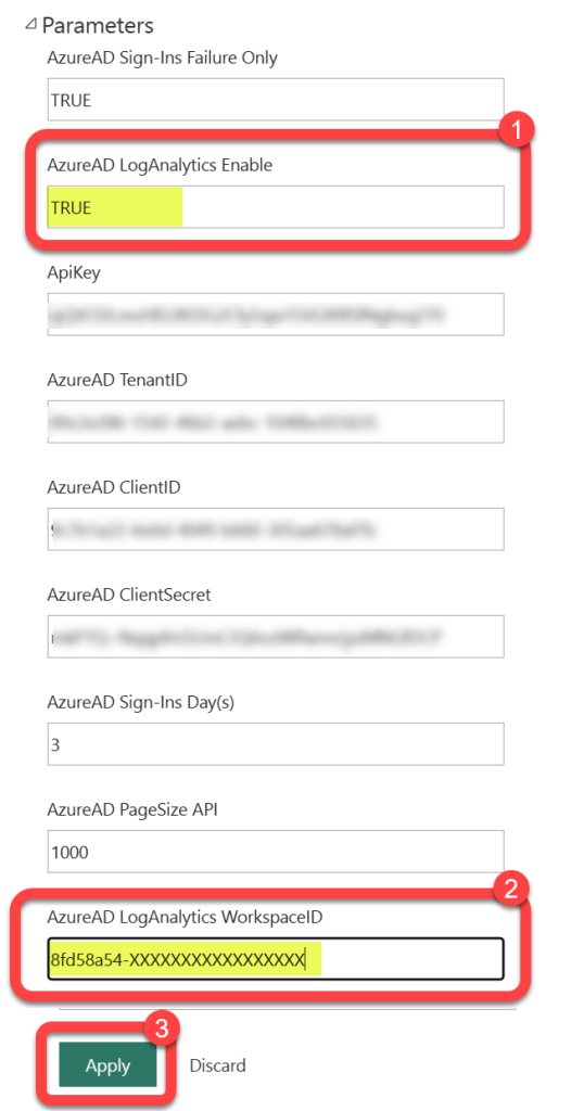 The BI for Intune dataset contains some parameters that must be configured to synchronize data from Intune to Power BI. Other parameters, such as this one, add additional functionality to BI for Intune. In this article we configure the parameters required for Log Analytics integration (used by both Custom Inventory and WUfB Reports).