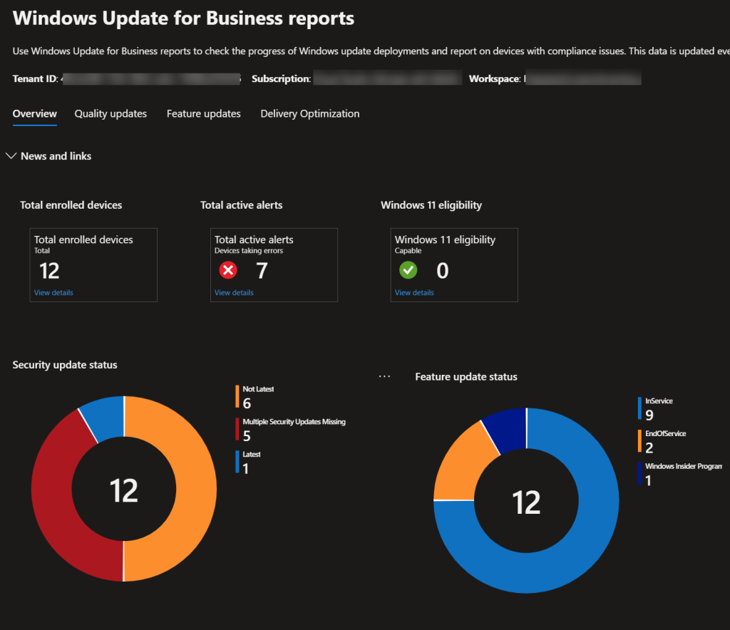 - Follow the guide by Microsoft to Add Windows Update for Business reports to your Azure subscription.