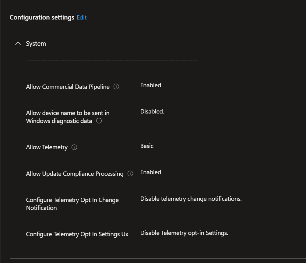- Follow the Microsoft documentation to create a Configuration Profile in Intune and deploy to Windows computers.