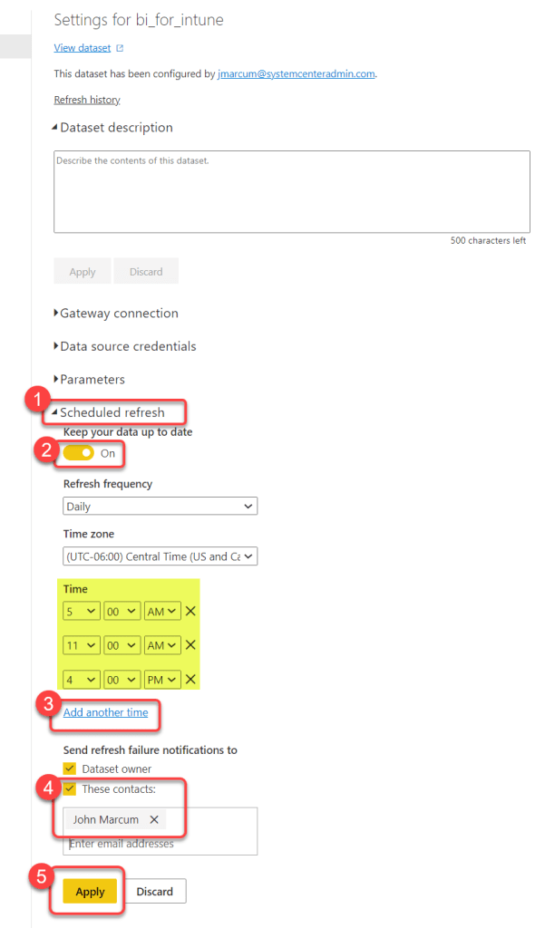 - Hover over the bi_for_intune Semantic model dataset to reveal a kebab menu (three vertical dots).