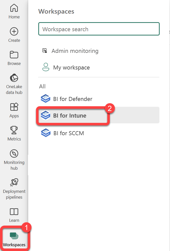 Step 1: Open the BI for Intune workspace¶