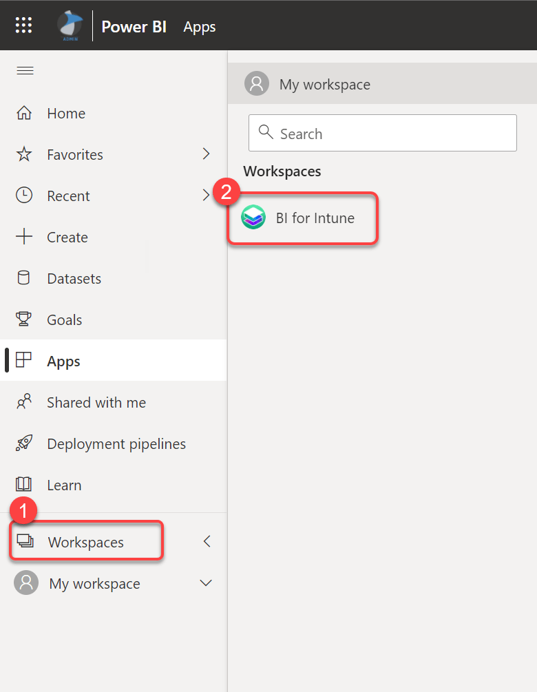 Step 1: Open the BI for Intune workspace¶