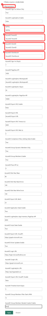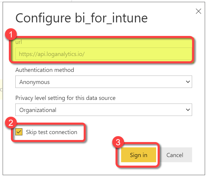 The BI for Intune dataset contains some parameters that must be configured to synchronize data from Intune to Power BI. Other parameters add additional functionality to BI for Intune. In this article we will only configure the parameters required for basic functionality. For a full list of dataset parameters please see the Dataset Parameters Explained document.