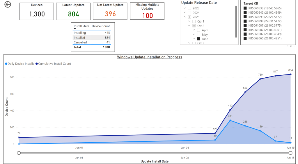 Version 60 brings some very exciting new features. Most notably the ability to track actions over time. We've added measures added new fields and measures for tracking device enrollments, OS installations, and cumulative update installations over time. This will be very handy for reporting on how many days it takes to reach compliance after updates are released, tracking the progress of migrating to Intune, and/or tracking the progress of migrating to a new OS version.