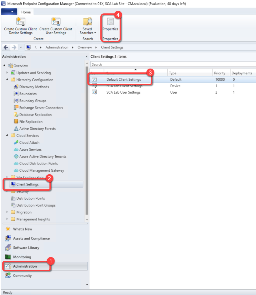 - Select the Default Client Settings. (Note: New classes must be added in the Default Client Settings.)