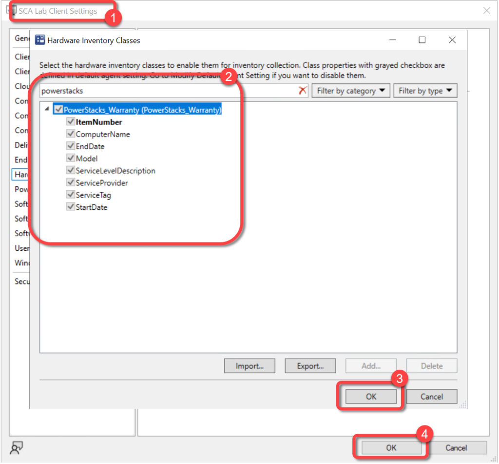 - Add the RootPowerStacks WMI class. For more detailed instructions see the official Microsoft guidance How to Extend Hardware Inventory, specifically the Add a Class section.